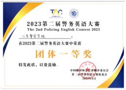 2023第二届警务英语大赛近日在浙江警察学院成功举办。伟德官网有四名选手参赛,并取得了团体一等奖和三个个人奖项的好成绩。本次大赛有来自全国23所公安政法院校和浙江公安出入境、出入境边防检查总站共25支参赛队,约160名代表参赛。