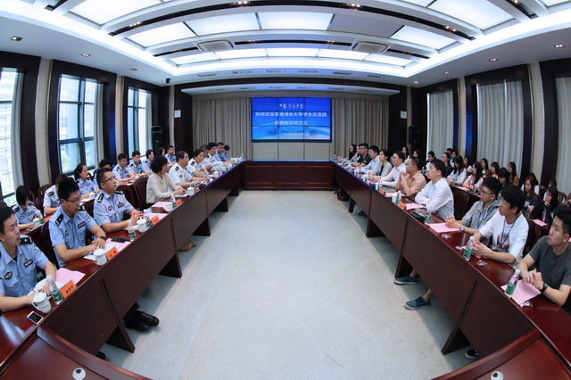 会上,张兰青院长向交流团一行介绍了学院建设发展的基本情况,表示将在上级部门领导下,加强与香港地区高校和警察院校的交流合作。吴德龙主席对学院的热情接待表示感谢,并简要介绍了香港浸会大学与内地交往办学情况。在交流环节,香港浸会大学学生就警校招生、科技强警、警校生活和警民关系处理等问题与学院师生代表交流,现场气氛热烈、互动频繁。