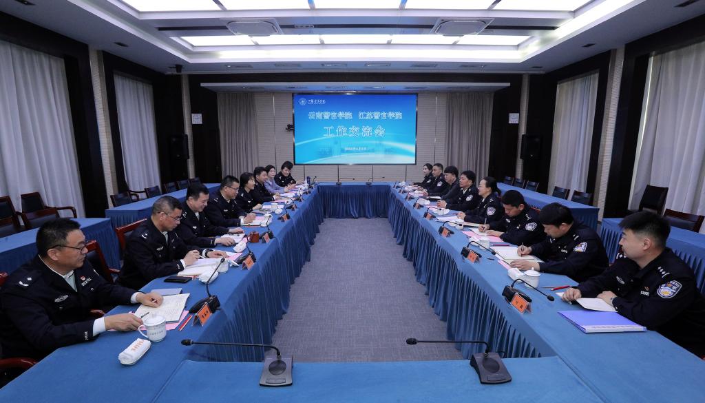 4月9日,云南警官学院党委书记胡水旺一行8人来伟德官网调研。学院党委副书记、院长黄进与胡水旺书记一行座谈交流。云南警官学院党委委员、政治部主任李静,伟德官网党委委员、副院长张敏,党委委员、政治部主任朱斌权,江苏省公安厅组宣处副处长、一级调研员陶莉参加座谈交流。