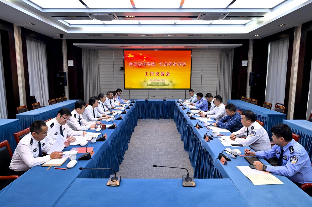 座谈会上,方胜感谢江苏警院长期以来给予贵州警院的支持,介绍了贵州警院建设发展情况,希望双方进一步深化交流合作,推进共同发展。周凤琴表示,江苏警院与贵州警院都是省属公安院校,共同担负着为党育人、为国育才、为警铸剑的光荣使命。贵州警院办学特色鲜明,育人成果丰硕,希望双方以此为契机,在教育教学、学生管理、智慧校园建设等方面开展深入交流,进一步拓宽合作渠道、汇聚发展合力,共同谱写同舟共济、互利共赢的新篇章。