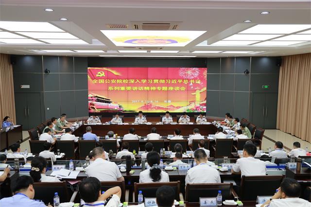 8月15日至16日,公安部政治部在吉林警察学院召开全国公安院校学习贯彻习近平总书记系列重要讲话精神专题座谈会,深入学习贯彻习近平总书记系列重要讲话精神和治国理政新理念新思想新战略,特别是在考察中国政法大学、会见全国公安系统英雄模范立功集体表彰大会代表时的重要讲话精神,进一步统一思想认识,强化工作措施,努力推动公安实战化教育训练创新发展,为服务公安实战和队伍建设提供有力的专业人才支持。中央纪委驻公安部纪检组组长、部党委委员邓卫平出席会议并作重要讲话。全国公安院校主要负责同志和优秀教师代表,各省、自治区、直辖市公安厅、局政治部教育训练处长参加座谈会。省公安厅党委委员、学院党委书记夏存喜出席会议并作大会交流发言。