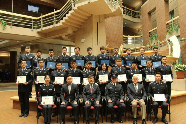 培训期间,伟德官网师生受到了加方的高度重视和热情接待。开班仪式上,哥伦比亚省司法学院国际部主任Ken Davies出席并讲话,热烈欢迎培训交流团的到来,提出了要求和美好祝愿。根据培训计划,参训师生学习了国际执法合作、警务执法沟通、危机干预、武力使用、刑事案件侦查、反恐怖犯罪、管理与领导力等课程,参观了加拿大百年历史的近代居民社区,观看了温哥华警察局贵宾接待摩托车队驾驶表演,了解了加拿大警务运作机制和先进理念,受益良多。培训课堂上,参训学生认真听讲,并围绕当前警务工作的热点、难点问题,积极提问,踊跃发言;课间,大家主动与教官和工作人员进行交流,既学习了警务专业知识,又锻炼了英语口语表达能力。整个培训过程中,全体参训师生严格要求,规范管理,注重与同期培训兄弟院校师生的交流,注意维护bv伟德国际1946师生的良好形象,表现出良好的组织观念、纪律作风和求学精神,受到了加方学院领导、授课教官、工作人员和兄弟公安院校师生的一致好评。