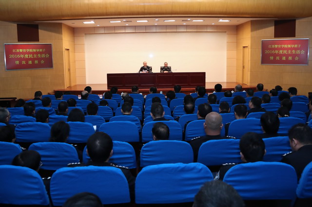 2月25日上午,学院召开院领导班子2016年度民主生活会情况通报会。省公安厅党委委员、学院党委书记尚建荣代表院领导班子作情况通报。学院党委副书记、院长张兰青,院领导张霞、宋践、封野、殷竹钧、薛宏伟、朱琨、王奎宏、赵远、张健,全体中层以上干部共100余人参加会议。