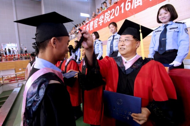 毕业典礼结束后,举行了学士学位授予仪式,学院和系(部)领导、老师为获得学士学位的毕业生扶正流苏,并颁发学士学位证书。(文/学生处图/组宣处)
