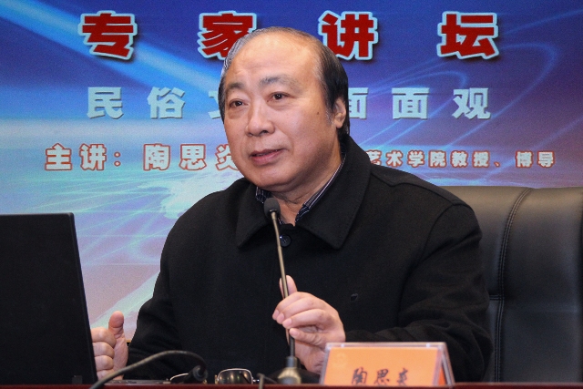 11月27日下午,应学院邀请,我国著名民俗学者、中国民间文艺家协会副主席、东南大学陶思炎教授做客伟德官网校园文化月“名家讲坛”,作“民俗文化遗产的释读”讲座。张健副院长主持了讲座。学院师生聆听了陶思炎教授精彩的演讲。