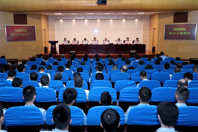 9月10日下午,学院召开干部教师会议,庆祝第34个教师节,表彰过去一年在教学科研、管理服务一线的先进个人。省公安厅党委委员、学院党委书记夏存喜出席会议并讲话。学院党委副书记、院长张兰青主持会议。