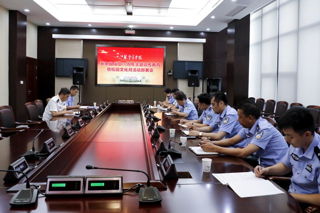 封野指出,今年是新中国成立70周年,党中央关于隆重庆祝新中国成立70周年作了统一部署,上级机关提出了明确要求,学院各部门要提高思想认识,把主题宣传教育活动作为贯穿全年的重要任务,作为全院师生参与的最大一堂思政课,作为学习贯彻习近平新时代中国特色社会主义思想特别是习近平总书记关于教育工作和公安工作的重要论述、推进学院高质量发展走在前列的强劲东风,紧密结合“不忘初心、牢记使命”主题教育活动,与校园文化月活动同步进行,充分体现学院特色、切实强化主体责任,务实高效地组织好形式多样、内容丰富的主题宣传教育活动,引导全院师生树牢“四个意识”、坚定“四个自信”、坚决做到“两个维护”,大力营造庆祝新中国成立70周年的浓厚氛围。