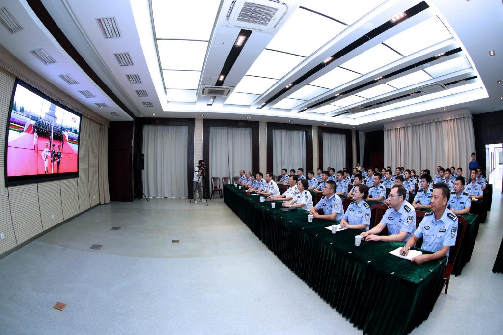 省公安厅党委委员、学院党委书记夏存喜与师生一同收看了庆典盛况,共同见证激动人心的历史时刻,感受祖国的繁荣昌盛。