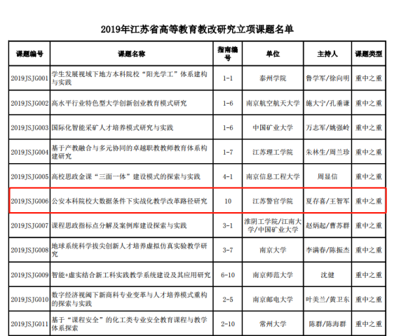 本次全省共立项高等教育教改重中之重项目17项,学院申报的《公安本科院校大数据条件下实战化教学改革路径研究》课题获得“重中之重”立项,这是学院历史上首次获得省级高等教育教改重中之重课题立项,也是学院近年来推进大数据条件下实战化教学改革取得的又一重大成果。