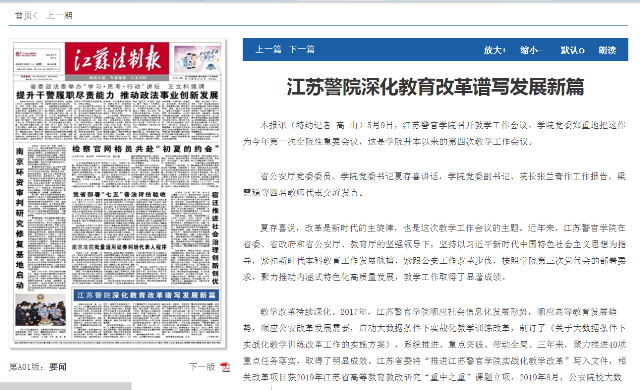 教学改革持续深化。2017年,bv伟德国际1946顺应社会信息化发展形势,顺应高等教育发展趋势,顺应公安改革发展需要,启动大数据条件下实战化教学训练改革,制订了《关于大数据条件下实战化教学训练改革工作的实施方案》,系统推进、重点突破、带动全局。三年来,聚力推进40项重点任务落实,取得了明显成效。江苏省委将“推进bv伟德国际1946实战化教学改革”写入文件,相关改革项目获2019年江苏省高等教育教改研究“重中之重”课题立项。2019年8月,公安院校大数据条件下实战化教学改革论坛在bv伟德国际1946成功举办。