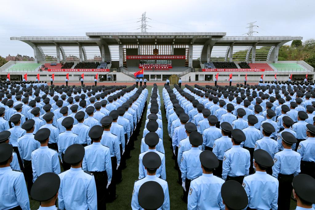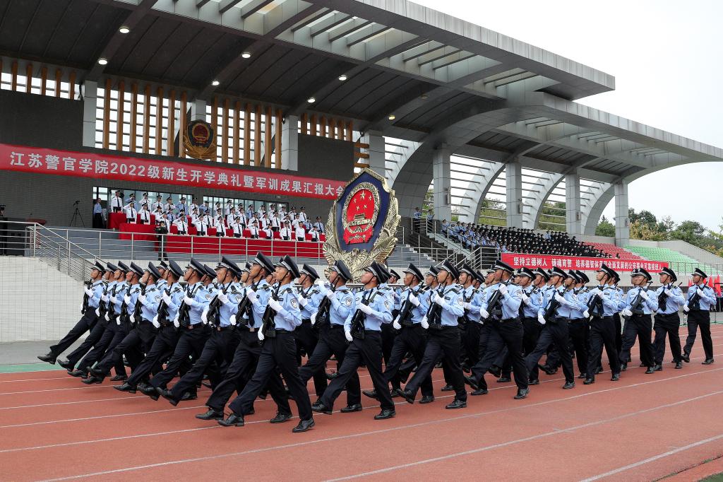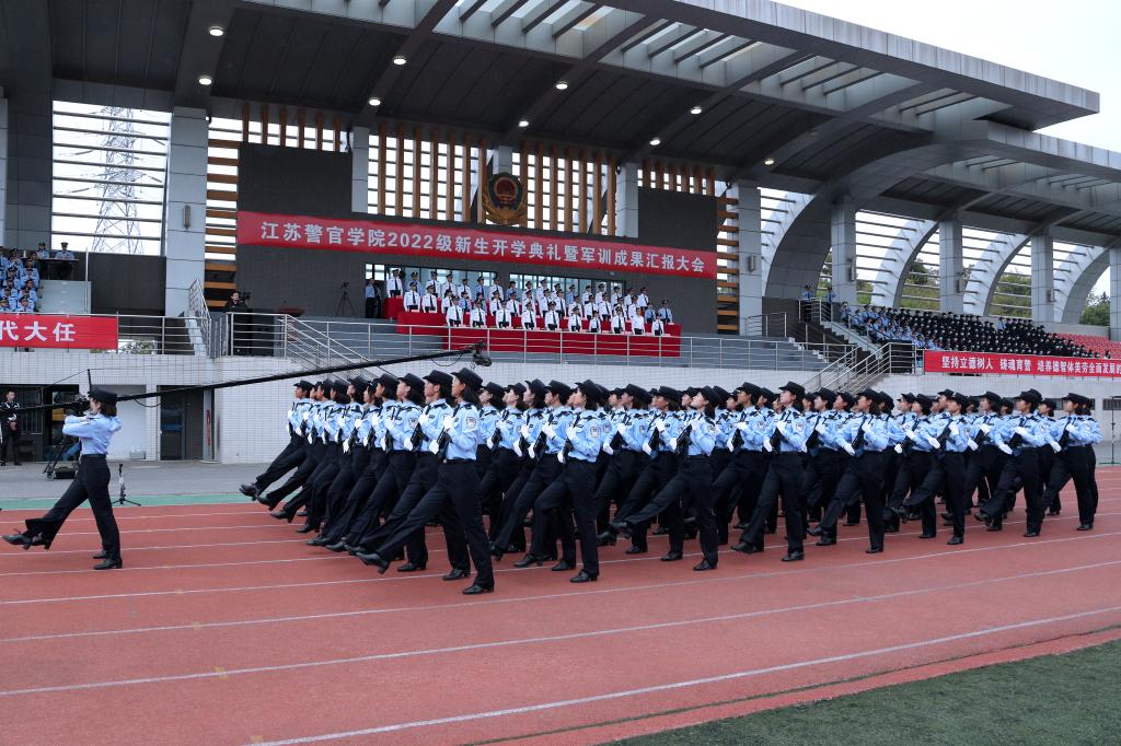 10月4日上午,学院在浦口主校区田径场举行2022级学生开学典礼暨军训成果汇报大会。省公安厅党委委员、学院党委书记夏存喜出席大会并讲话。会议由学院党委副书记、院长张兰青主持。