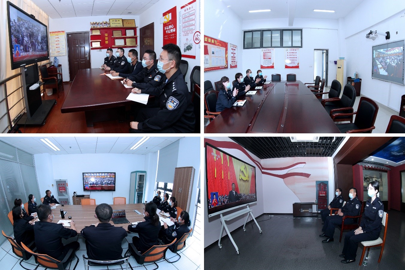 (师生在教室、大数据教学资源服务中心、报告厅、会议室、实验室等场所认真收看大会实况直播)