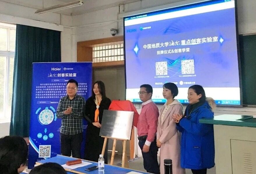 (通讯员 罗采薇 陈晓鹂 张彬彬)2019年1月9日,德赢AC米兰中国官方网站(武汉)海尔创客实验室揭牌仪式暨创客学堂宣讲在地大教一楼204举行。德赢AC米兰中国官方网站副院长文国军、工业设计系主任陈晓鹂,副系主任张彬彬,海尔创客实验室执行总监宋美丽、项目经理盛璐、实验室导师马善记出席本次活动。