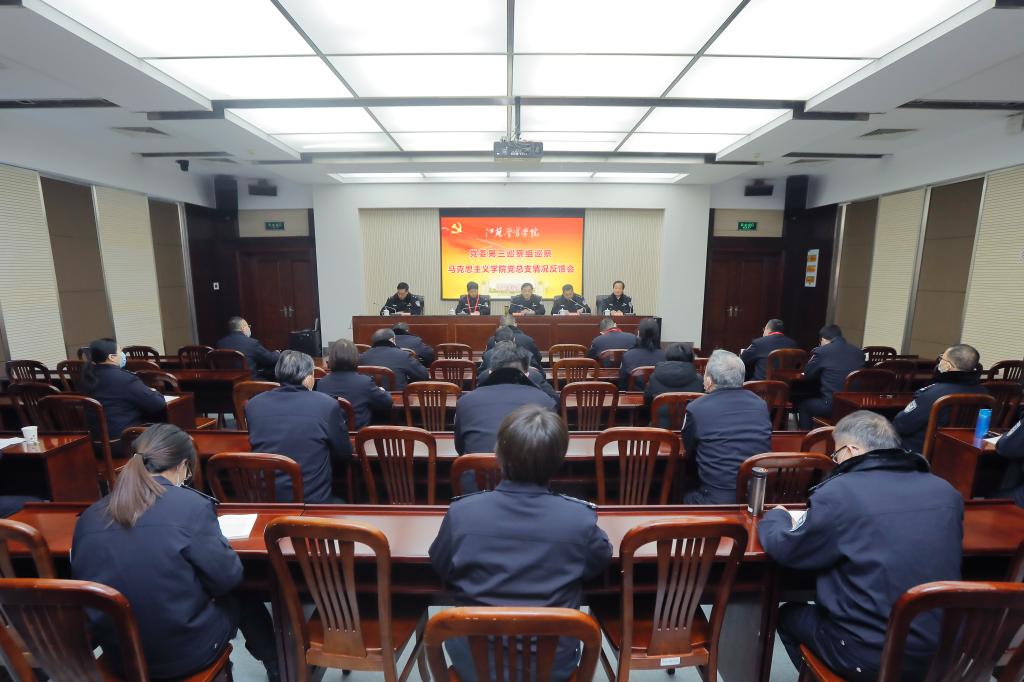 1月13日上午,学院召开2021年第二轮巡察情况反馈会。学院党委副书记、巡察工作领导小组副组长封野,学院党委委员、纪委书记、省监委派驻监察专员、巡察工作领导小组副组长钱武华出席会议并讲话。党委第三巡察组组长顾海舟、第四巡察组组长吴福男分别向马克思主义学院、侦查系、现代教育技术中心、后勤服务中心等4个党组织反馈巡察情况,被巡察党组织书记分别作表态发言。