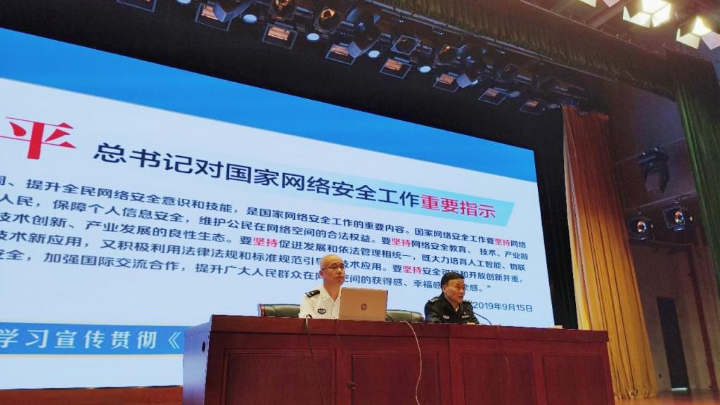 开幕式后,计算机信息与网络安全系主任王群以“网络安全防范知识”为主题,就用网安全、隐私保护防范网络诈骗、安全使用软件以及网络安全必备技能等方面,为师生带来一场精彩的讲座。