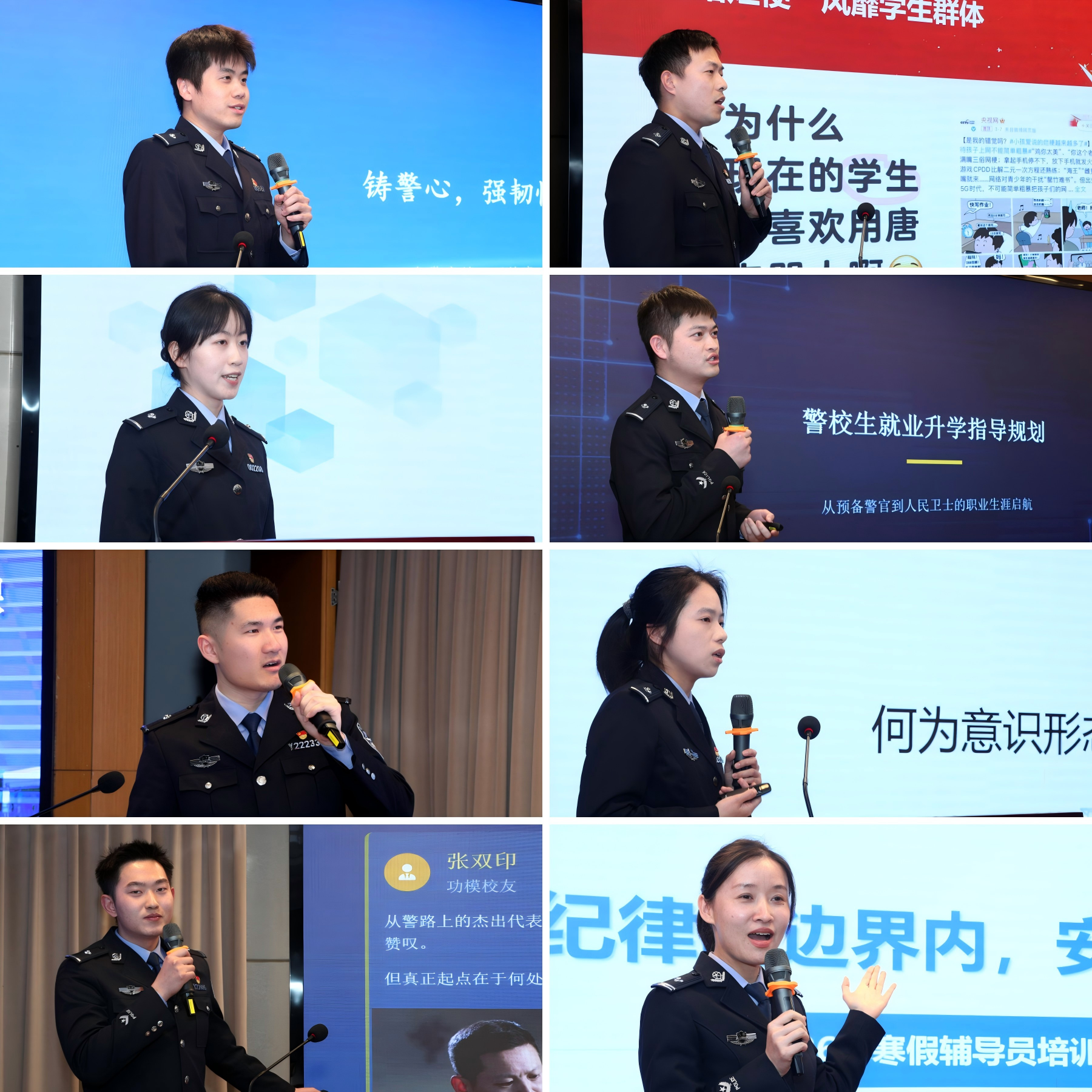 班会课展示,8名选手围绕思想引领、警务化管理、心理健康教育、安全教育等主题,精心构思、精细设计、精彩展示,将多学科知识融入思政教育,以真诚和生动的表达建立师生互信、传递育人理念,展现扎实的专业功底与职业素养。