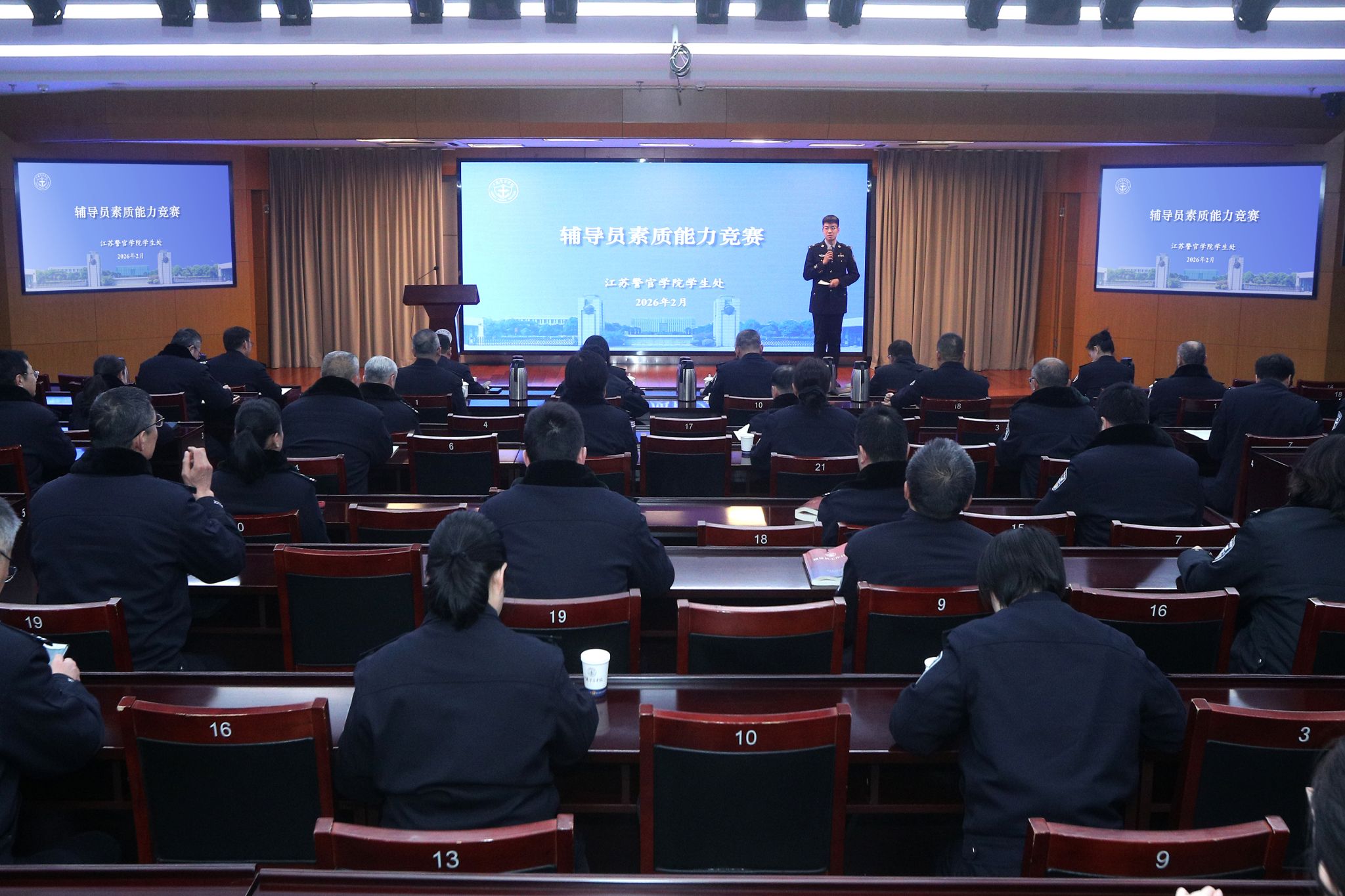 为深入贯彻习近平总书记关于教育的重要论述、关于新时代公安工作的重要论述,全面落实立德树人、铸魂育警根本任务,扎实推进辅导员队伍专业化、职业化建设,着力提升辅导员思想政治教育和警务化管理能力,2月2日至5日,学校举办2026年辅导员培训暨素质能力竞赛。学院党委委员、纪委书记、省监委派驻学院监察专员殷其新,学院党委委员、副院长张敏出席有关活动。二级学院政委参加辅导员素质能力竞赛活动并担任评委,学生处、团委全体干部教师和本科生辅导员参加培训。