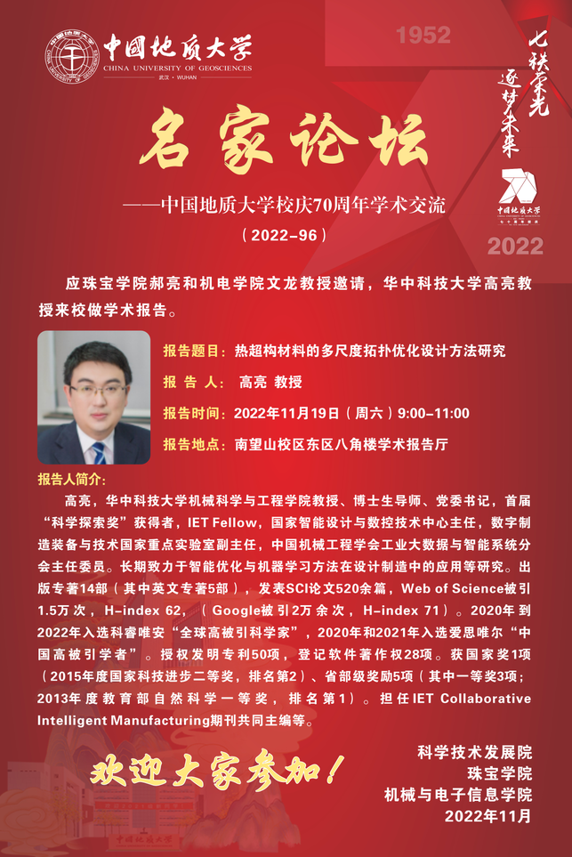 【11月19日】校庆系列学术活动---名家论坛(2022-96):华中科技大学高亮教授