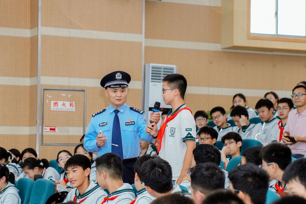 校长致辞后,周加军警官给同学们带来了一场生动的法治宣讲,他用同学们熟悉的案例,告诉同学们要守好法律的底线,做遵纪守法的新时代好青年。周教官精彩的讲解赢得了大家热烈的掌声。